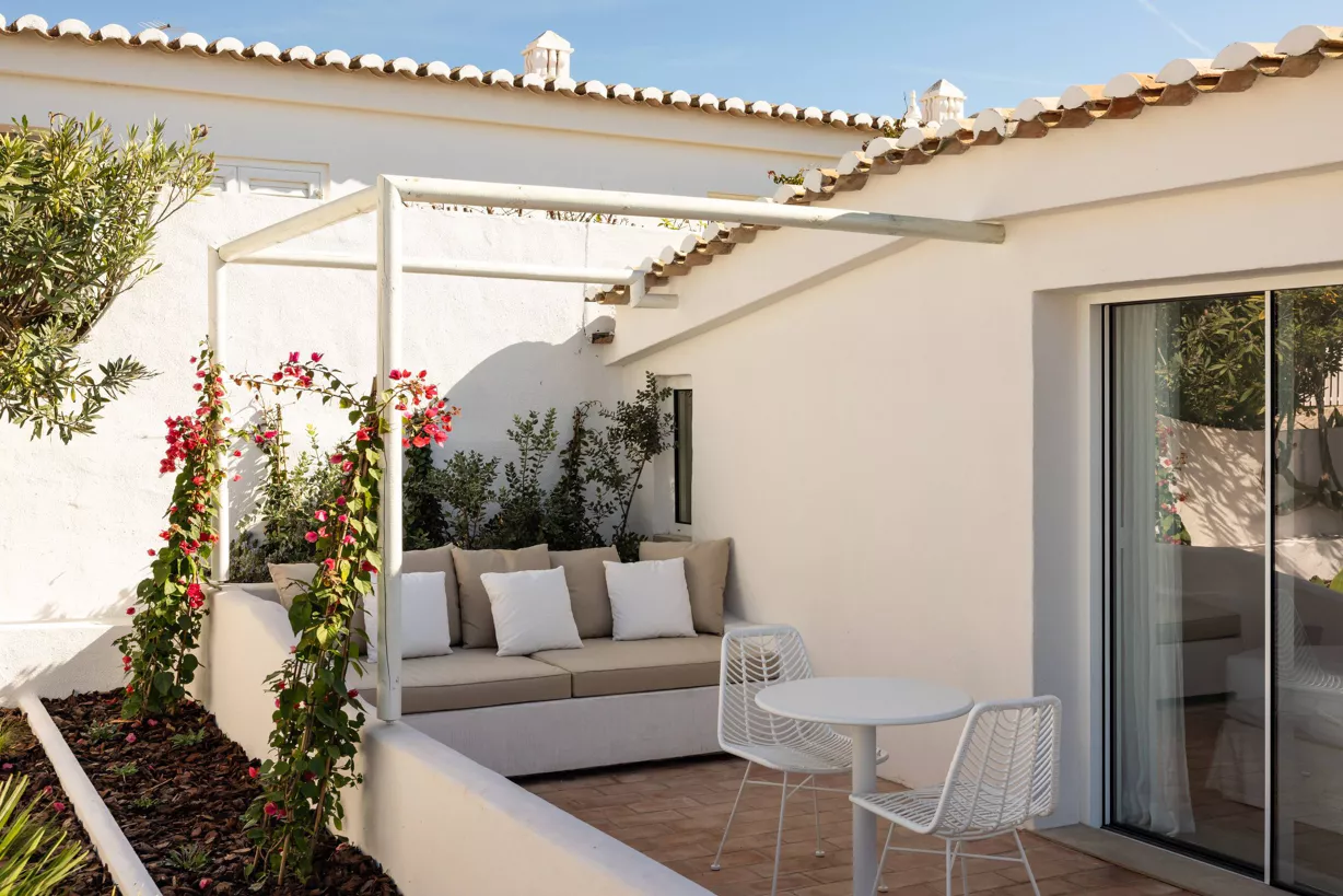 In the Algarve, you can enjoy striking beaches like Praia Maria Luisa or Praia da Falésia, perfect for sunbathing, swimming, and water sports. Take a yacht tour to see the stunning coastline, while sipping champagne and savoring delicious tapas. Enjoy a round of golf at one of the amazing nearby courses. Play a few sets of tennis or padel at the neighboring Annabel Croft Tennis Academy, surrounded by scenic pine trees. Our Concierge will have numerous suggestions to make such as yoga or personal training sessions, a massage on the rooftop or even an outdoor movie night, including a popcorn machine!